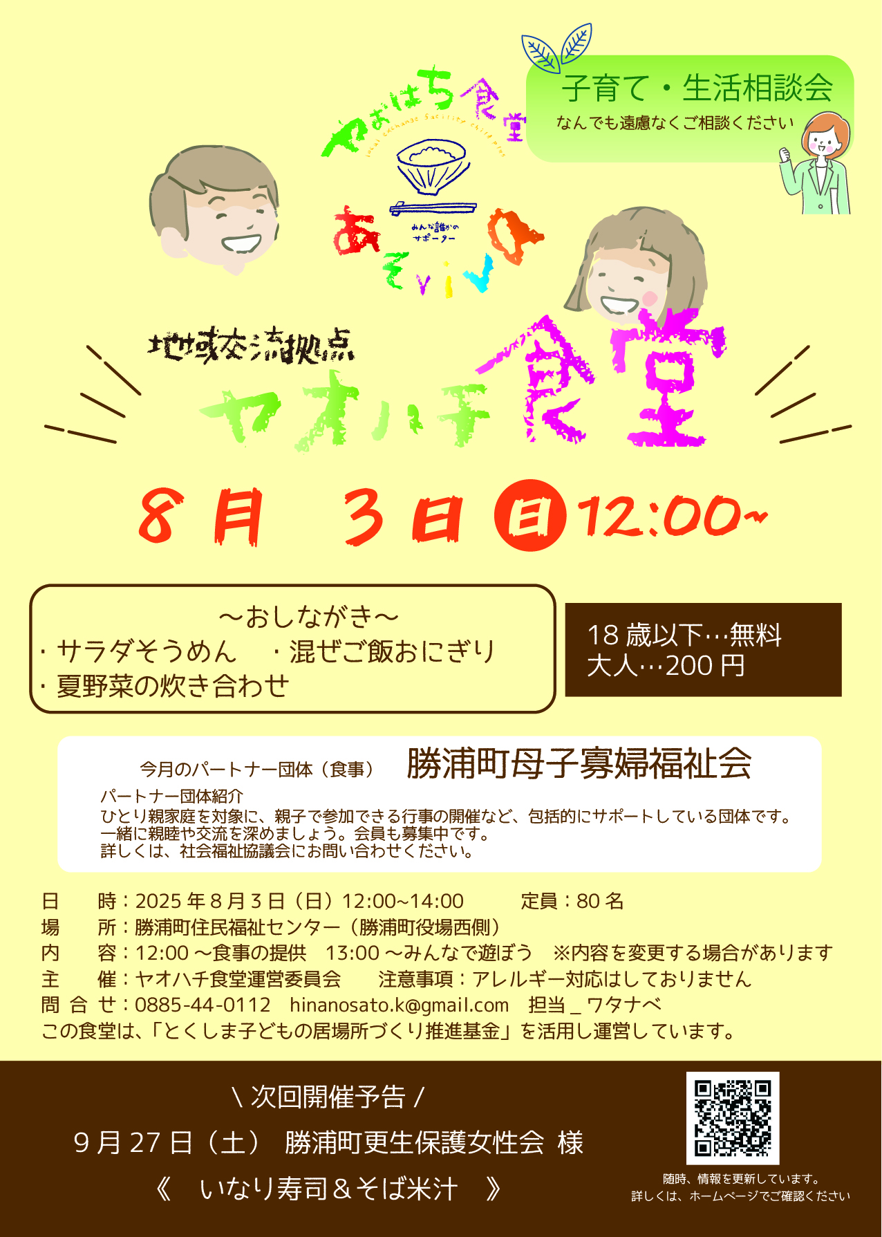 2025.8.3 やおはち食堂OPEN 今月のパートナーは勝浦町母子寡婦福祉会