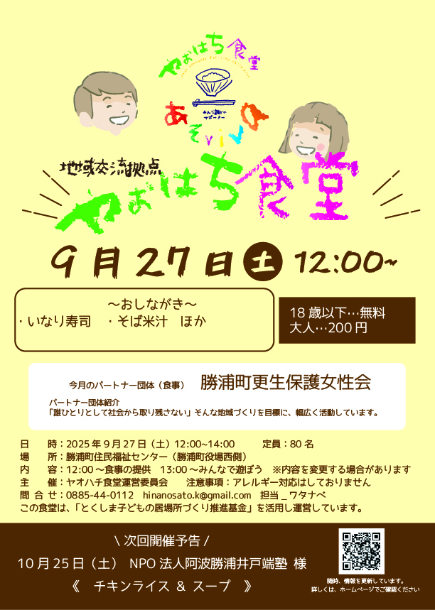 2025.9.27 やおはち食堂OPEN 今月のパートナーは勝浦町更生保護女性会