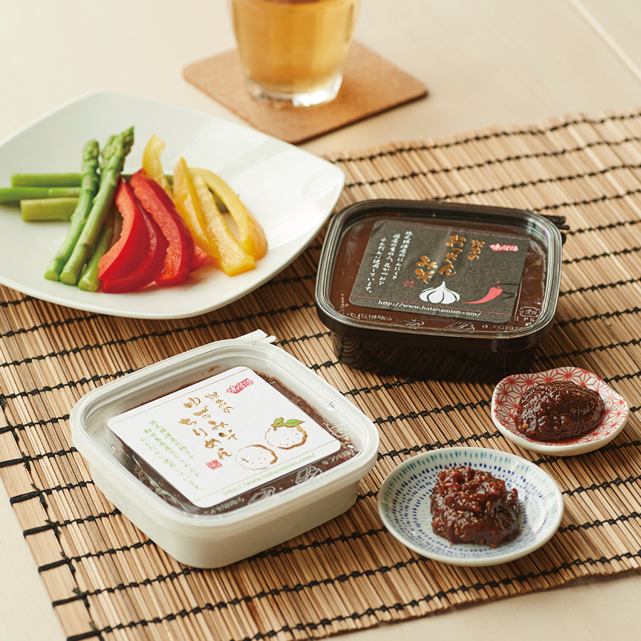 【原材料】 味噌(国内製造)、みりん、にんにく、砂糖、かつお節、唐辛子、ごま、植物油