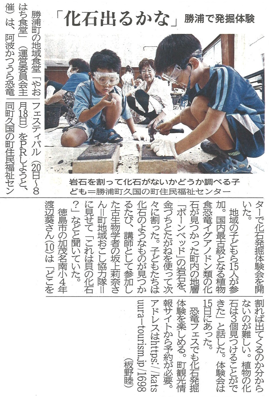 R6.7.18徳島新聞にてヤオハチ食堂化石発掘体験が特集されました。